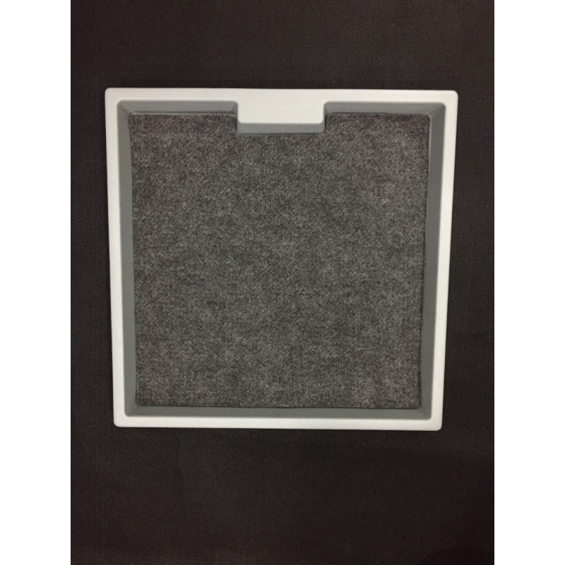 Bandeja plástica de desinfección de calzado de distintos colores, resistente, antideslizante con un tamaño de 43 cm X 43 cm con tapete incluido.